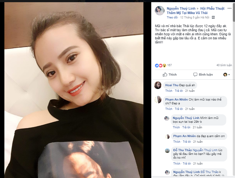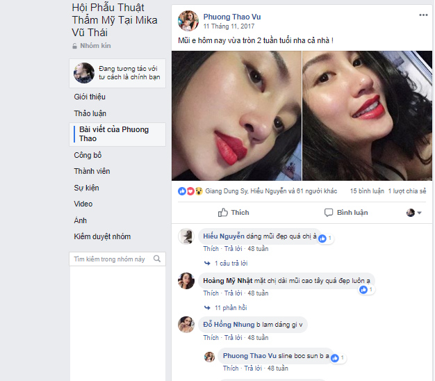 Lời chia sẻ của Phương Thảo Vũ sau 2 tuần nâng mũi S line bọc sụn trên Hội PTTM tại Mika Vũ Thái.