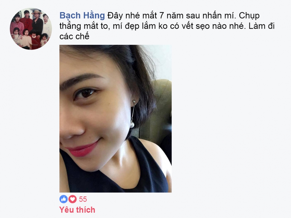 Thi Van Nguyen: “Mắt mình nhấn mí ở Mika Vũ Thái được 6 năm rồi mà ai gặp cũng nói đẹp. Cảm ơn bác sỹ Thái nhé. Cứ nghĩ sau 2 năm nhấn mí sẽ bị sụp phải làm lại. Vậy mà 6 năm rồi vẫn ok…”