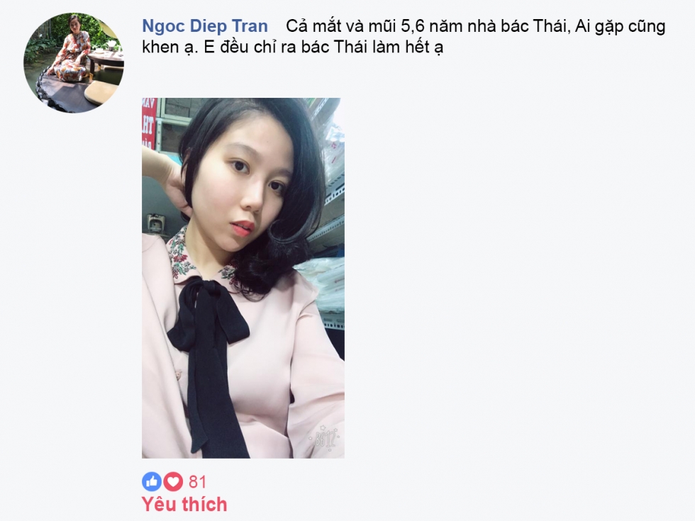 Ngọc Diệp Trần: “Cả mắt và mũi 5,6 năm nhà Bác Thái, ai gặp cũng khen ạ. Em đều chỉ ra bác Thái làm hết ạ.”