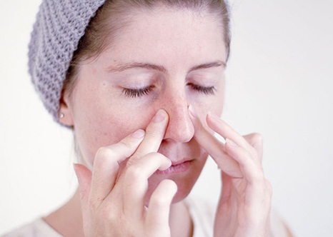 - Bước 2: Dùng ngón tay xoa bóp nhẹ nhàng dọc theo sống mũi và cánh mũi, giữ như vậy khoảng 20 giây rồi thả ra.