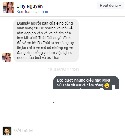 Không chỉ Hà Nội mà rất nhiều chị em ở xa cũng tìm tới tư vấn và làm đẹp tại Mika Vũ Thái Khi ngắm nhìn những dáng mũi tự nhiên của các bạn, Thu Thuy đã khá hài lòng. Sau đó cô dành thêm thời gian tìm hiểu kỹ hơn về thẩm mỹ viện cũng như bác sĩ Vũ Thái thì cô cảm thấy có thể gửi trao niềm tin cho vị bác sĩ 20 năm kinh nghiệm, đã thực hiện hơn 20,000 ca phẫu thuật này được. Nghĩ là làm, cô quyết định đặt vé máy bay sớm nhấn trong lịch trình của mình để ra Bắc thăm khám và phẫu thuật nâng mũi ngoài này.